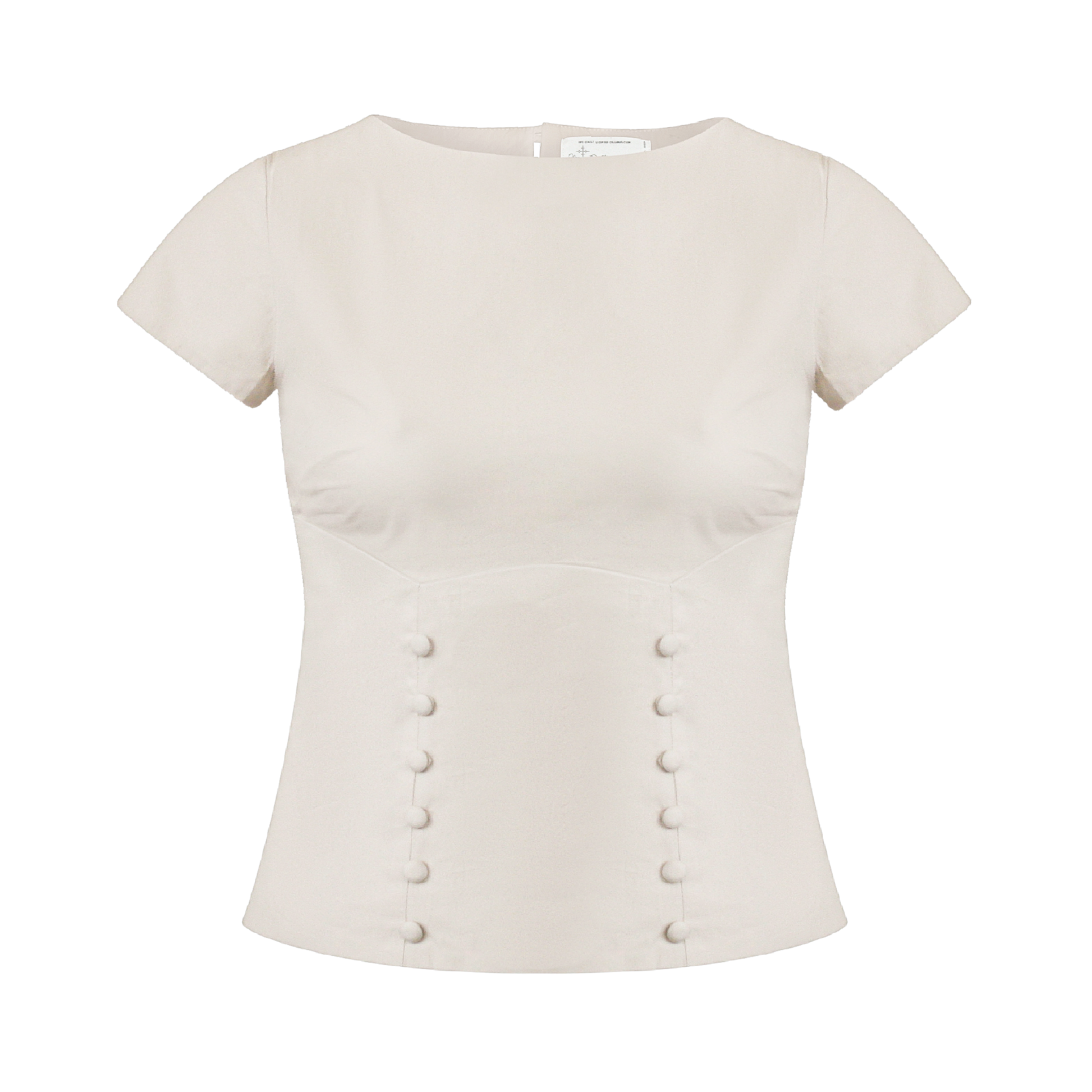 The Rouleau Bodice is made from 100% cotton fabric and is fully lined. The top features bust darts and waist panels with princess seams on the back for a structured fit. The front waist panels are embellished with fabric buttons and rouleau button loops. The back of the bodice features princess seams with fabric buttons down the centr