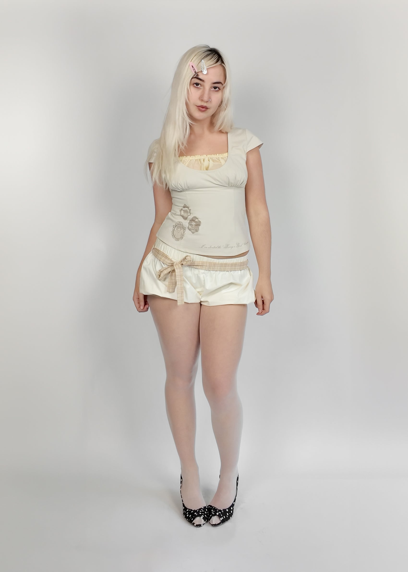 The Familiar Blouse is styled with our Nanami Bloomer Shorts & Motif Bubble Skirt.