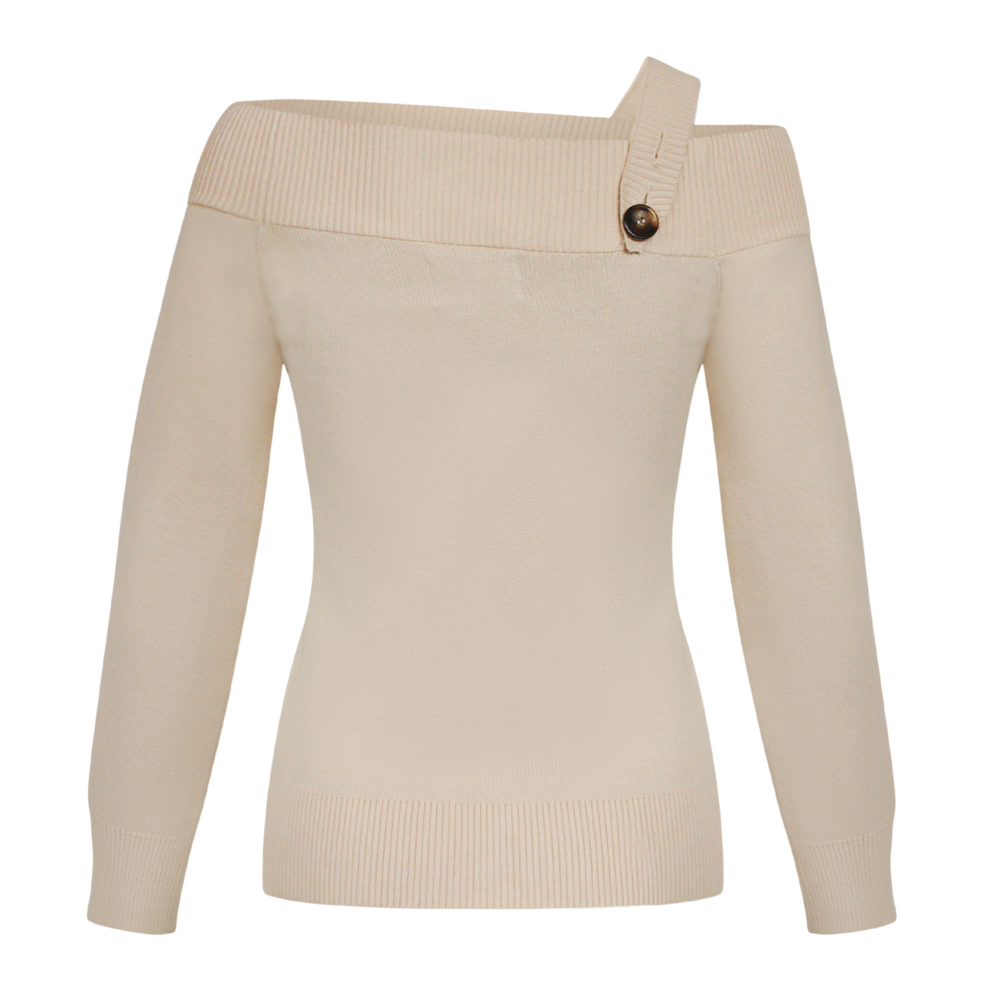Mid-weight jacquard woven sweater of Tomoe and Nanami from Kamisama Kiss 2. Sweater has an asymmetrical, off-shoulder fit. The shoulder strap is adjustable and removable. Design is woven into the sweater. Slimmer fit and silhouette, size up for an oversized fit.